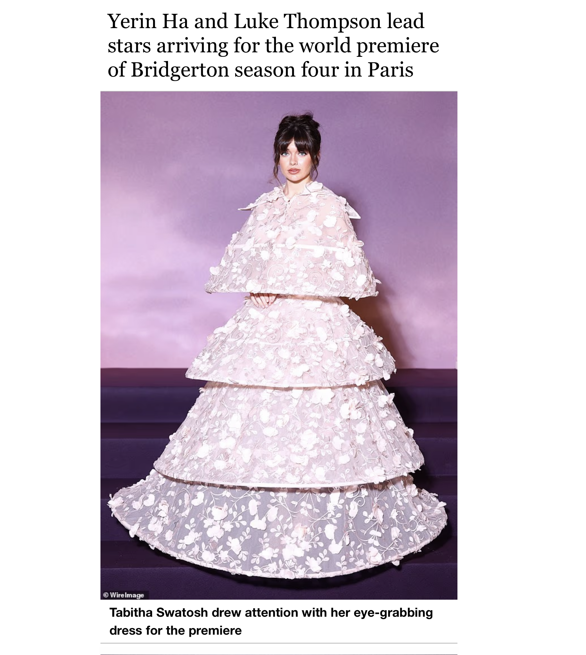 Tabitha Swatosh wears Tess Mann Atelier Couture to Bridgerton Premiere in Paris